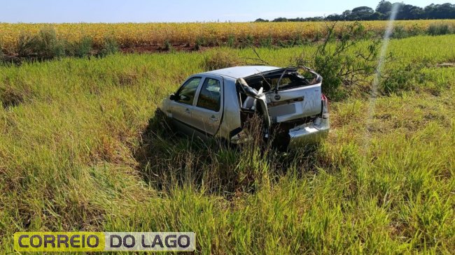 Durante a manobra, houve uma colisão lateral entre os veículos. Com o impacto, a motorista perdeu o controle da direção, o carro rodou na pista e acabou capotando fora da faixa de rolamento, parando com as rodas voltadas para cima em meio à vegetação.