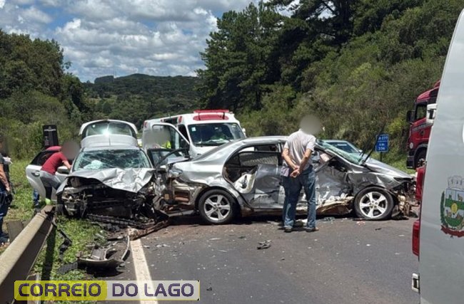 A ocorrência foi atendida por equipes da Polícia Rodoviária Federal (PRF) por volta das 13h30, no km 336 da rodovia. A dinâmica envolveu uma colisão frontal, seguida de impacto lateral, mobilizando atendimento médico e controle do tráfego no trecho.