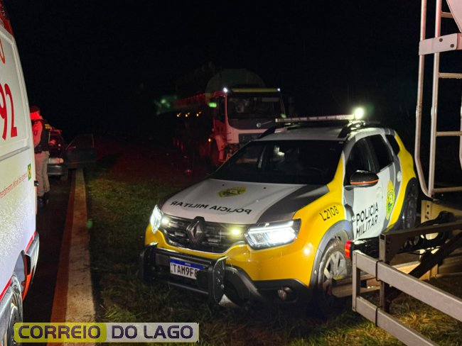 Carro e caminhão se envolvem em acidente na PR-317, em Santa Helena