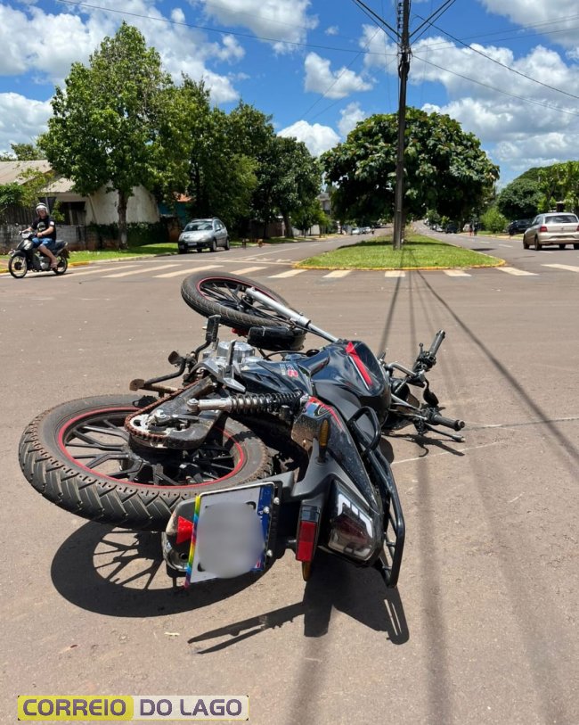 Um acidente de trânsito foi registrado por volta das 12h45 desta terça-feira (18), entre o cruzamento da Avenida Santa Catarina e a Avenida Paraná, em Santa Helena. A ocorrência envolveu um veículo GM Astra Hatch e uma motocicleta Kenton, com placa do Paraguai.