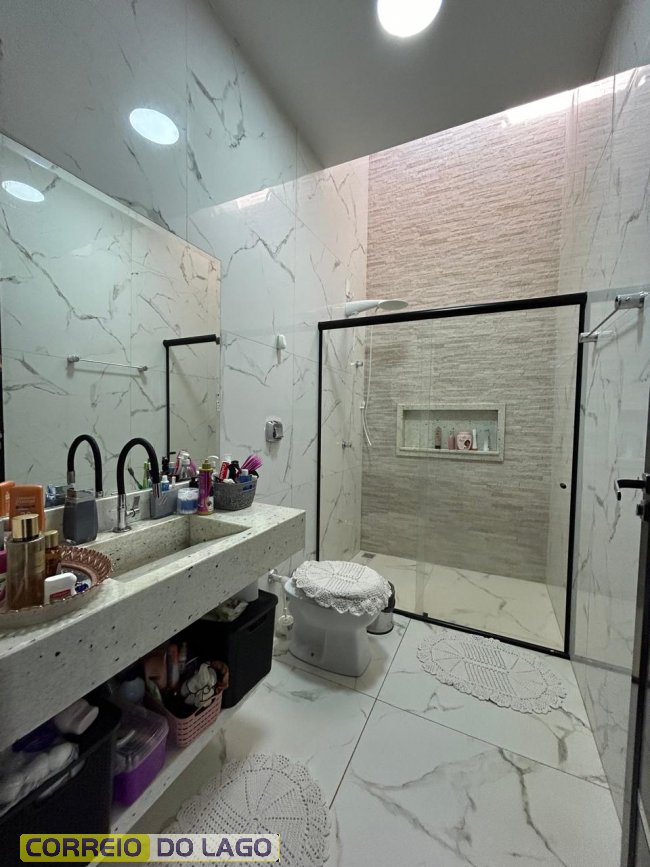 A casa dispõe ainda de lavanderia, garagem coberta para dois carros e sistema de energia com placas solares, que garante economia e sustentabilidade. O espaço foi planejado para atender às necessidades de uma família que busca bem-estar em um endereço valorizado.