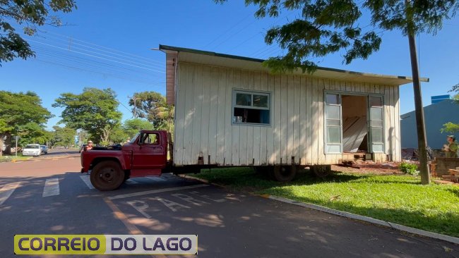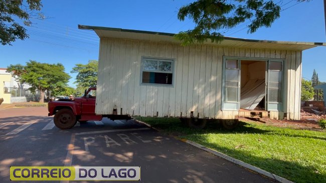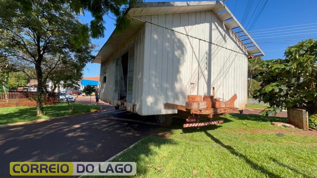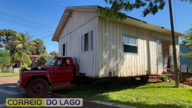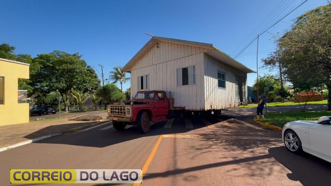 Na manhã desta quarta-feira (22), uma casa foi retirada de seu local original, localizado na Rua Amadeu Bortolini, no cruzamento com a Rua Rio de Janeiro, em Santa Helena, e transportada sobre um caminhão até o distrito de São Roque.
