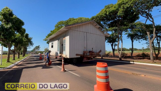 Casa é transportada de caminhão até o distrito de São Roque em Santa Helena com escolta da Polícia Rodoviária