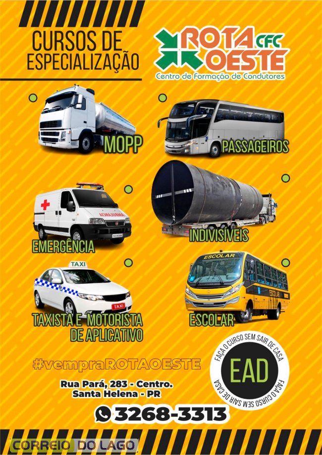 Motoristas interessados podem procurar o CFC Rota Oeste para saber mais, esclarecer dúvidas e realizar a matrícula. É uma oportunidade para se profissionalizar e ampliar as chances no mercado de trabalho.