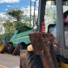 Colheitadeira é flagrada às margens de estrada rural no interior de Santa Helena