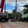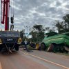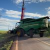 Colheitadeira em risco de capotamento é retirada com sucesso na PR-488, em Santa Helena