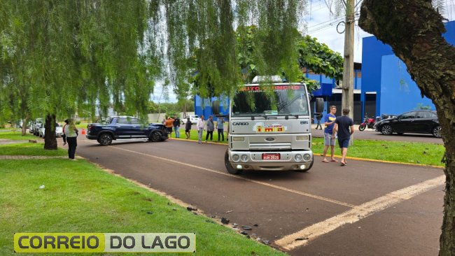 Colisão entre caminhonetes mobiliza socorro e polícia no centro de Santa Helena