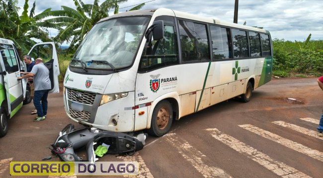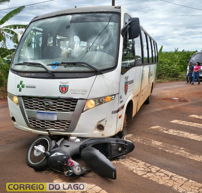 A colisão envolveu um micro-ônibus pertencente à prefeitura municipal e uma motocicleta Honda Biz 125. A moto era conduzida por uma mulher, que acabou sofrendo escoriações pelo corpo em decorrência do impacto.