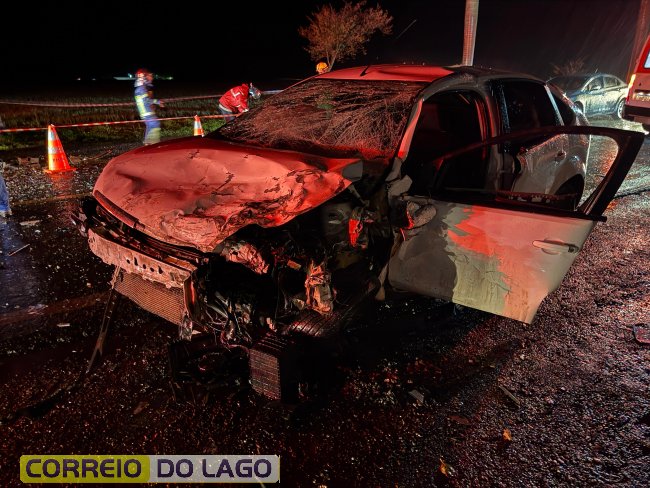 A ocorrência mobilizou equipes do Corpo de Bombeiros, Defesa Civil, Polícia Rodoviária Estadual (PRE) e profissionais da saúde do município. Com o impacto, os dois veículos tiveram a parte dianteira destruída.