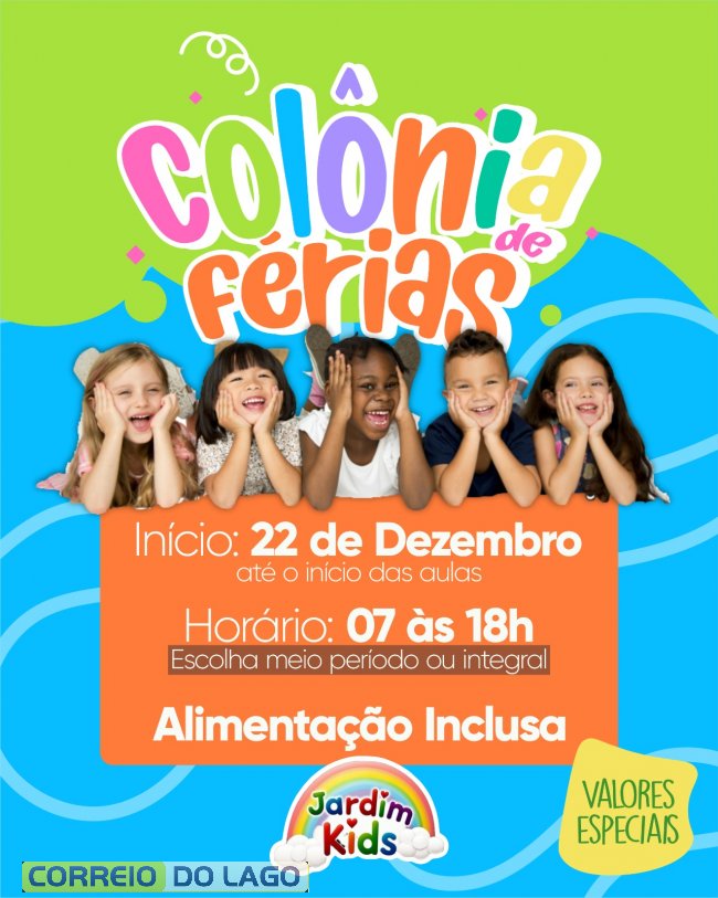 As férias estão chegando e o Jardim Kids, em Santa Helena, abriu inscrições para sua Colônia de Férias. A proposta é garantir dias leves, alegres e cheios de experiências para as crianças, com uma programação criada especialmente para estimular a imaginação e o convívio social.