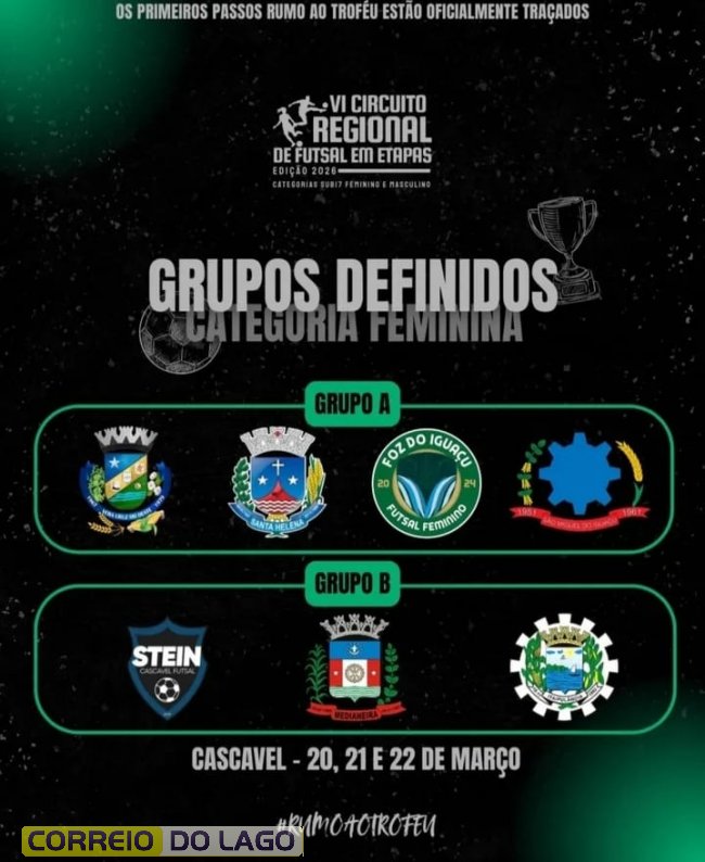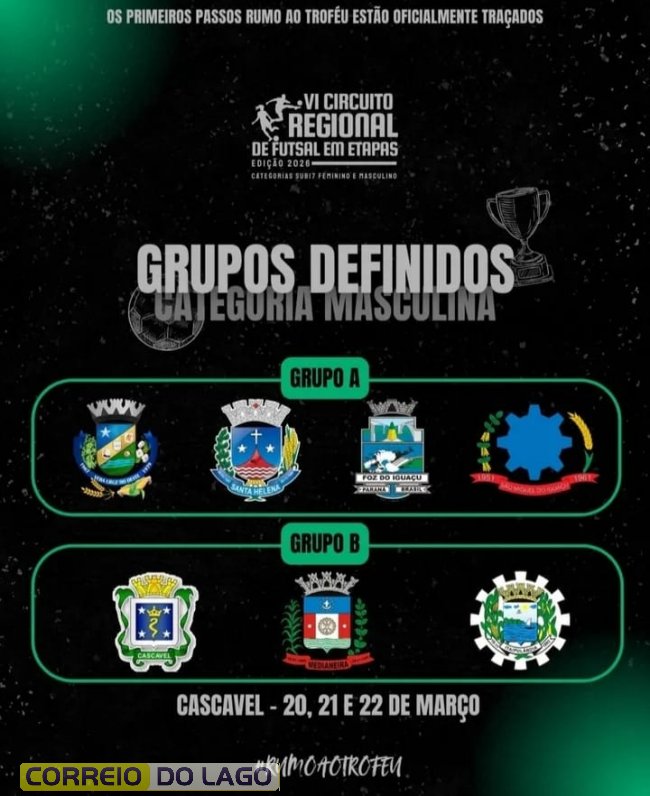 O município de Cascavel será palco, entre os dias 20 e 22 de março, da VI etapa do Circuito Regional de Futsal Sub-17, nas categorias masculino e feminino, reunindo equipes de toda a região.