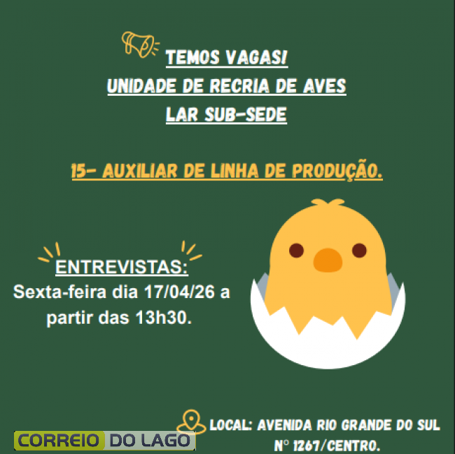 Maior de 18 anos, não necessita experiência (entrevistas na Agência do Trabalhador dia 17/04/2026, sexta-feira, a partir das 13h30).