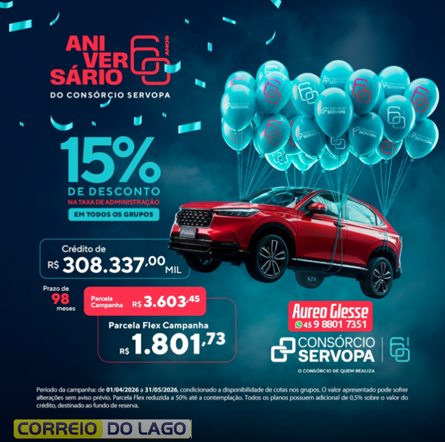 Consórcio Servopa reúne créditos de entrada e intermediários, parcelas acessíveis e desconto nas taxas! Saiba detalhes com Áureo Glesse