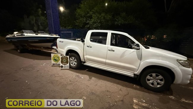 Por volta das 17h, durante diligências na região do Lago de Itaipu, as equipes identificaram uma embarcação vinda do Paraguai transportando diversos volumes. O barco adentrou um braço do lago já em território brasileiro, onde uma caminhonete com carreta acoplada realizou a retirada da embarcação da água, levantando suspeitas de crime transfronteiriço.