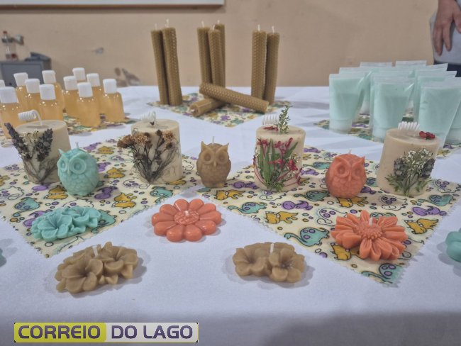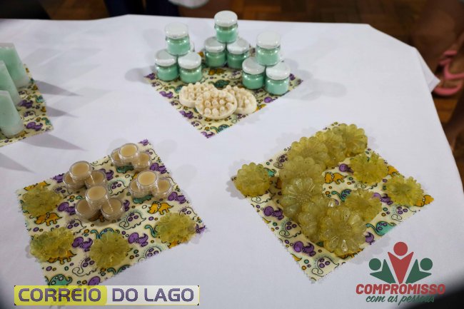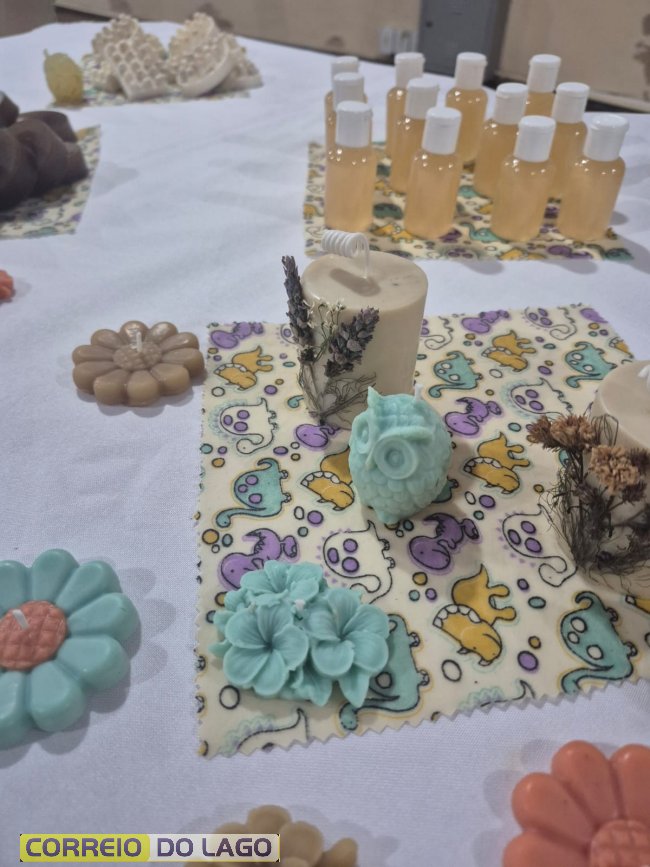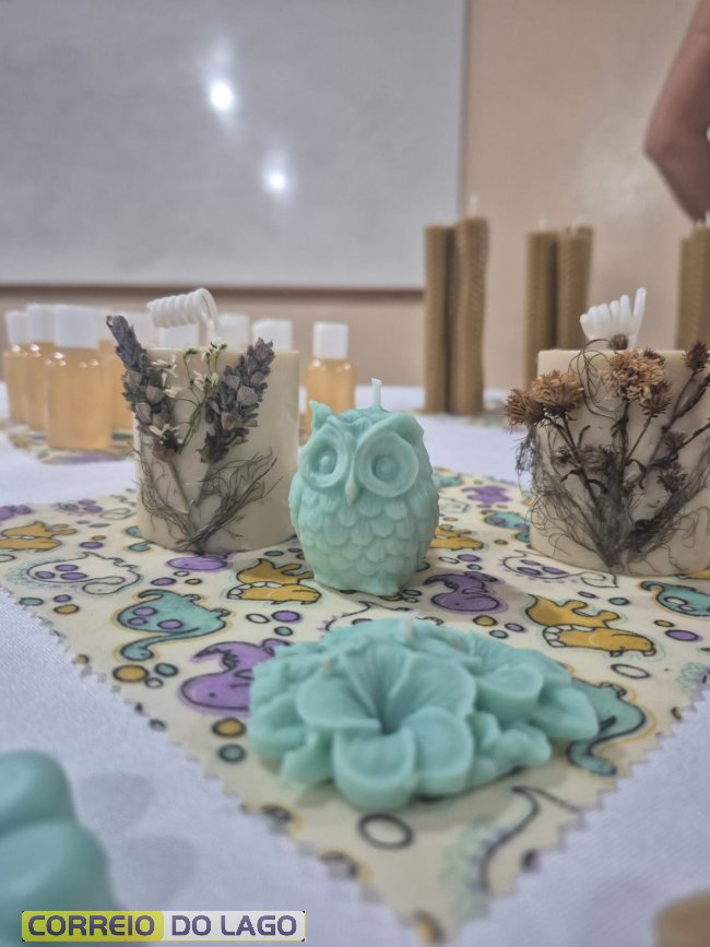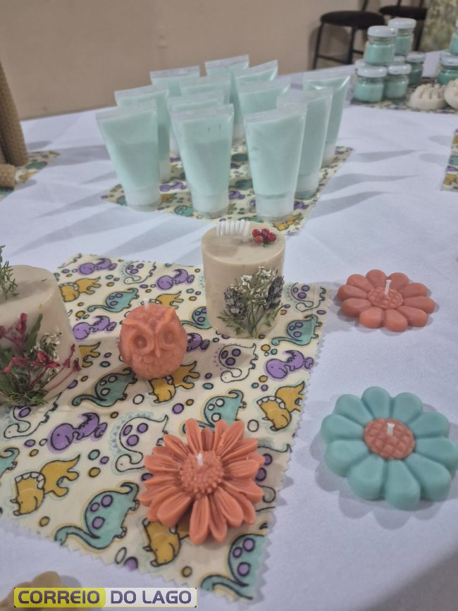 Durante a formação, foram ensinadas técnicas de produção de sabonetes, cosméticos naturais, velas artesanais e panos de cera de abelha, além de orientações sobre acabamento, embalagem e comercialização.