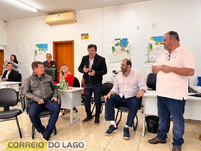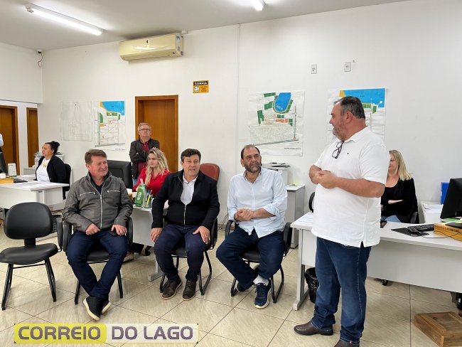 Nesta sexta-feira (5), o deputado federal Elton Welter (PT) esteve em Santa Helena cumprindo agenda no Oeste do Paraná. Durante a visita, ele se reuniu com funcionários da APAE, da Usina de Reciclagem, servidores do turismo e autoridades municipais, incluindo o prefeito Dinho Maraskin e a vice-prefeita Fabricia Bedendo, no Balneário Terra das Águas. O encontro ocorreu no Centro de Apoio ao Turista (CAT) e contou com a presença do secretário de Desenvolvimento Econômico, Joner Sassi, representantes do CTG Filhos do Sul, da Colônia de Pescadores Nossa Senhora dos Navegantes e outras lideranças locais.