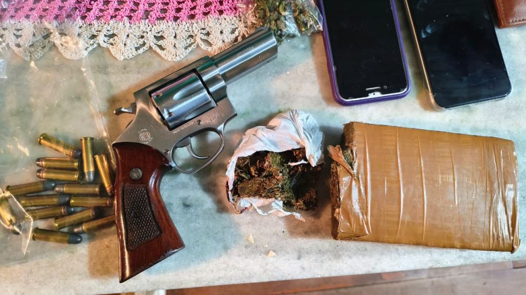 Durante o cumprimento do mandado, o homem e sua mãe foram presos em flagrante. A prisão ocorreu devido à posse de uma arma de fogo ilegal, com numeração suprimida. O investigado também foi autuado pelo crime de tráfico de drogas.
