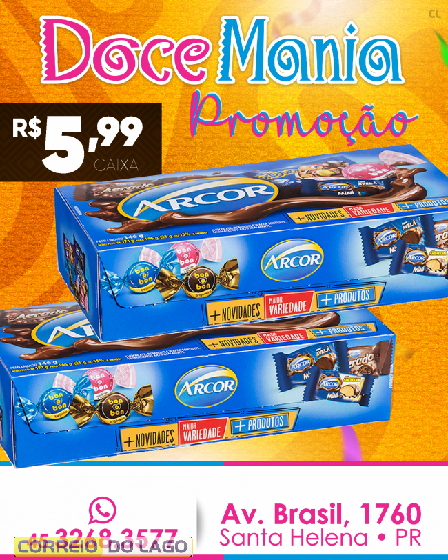 A Doce Mania, de Santa Helena, tem caixas de bombom Arcor em promoção para fazer a alegria das crianças neste final de semana de carnaval!