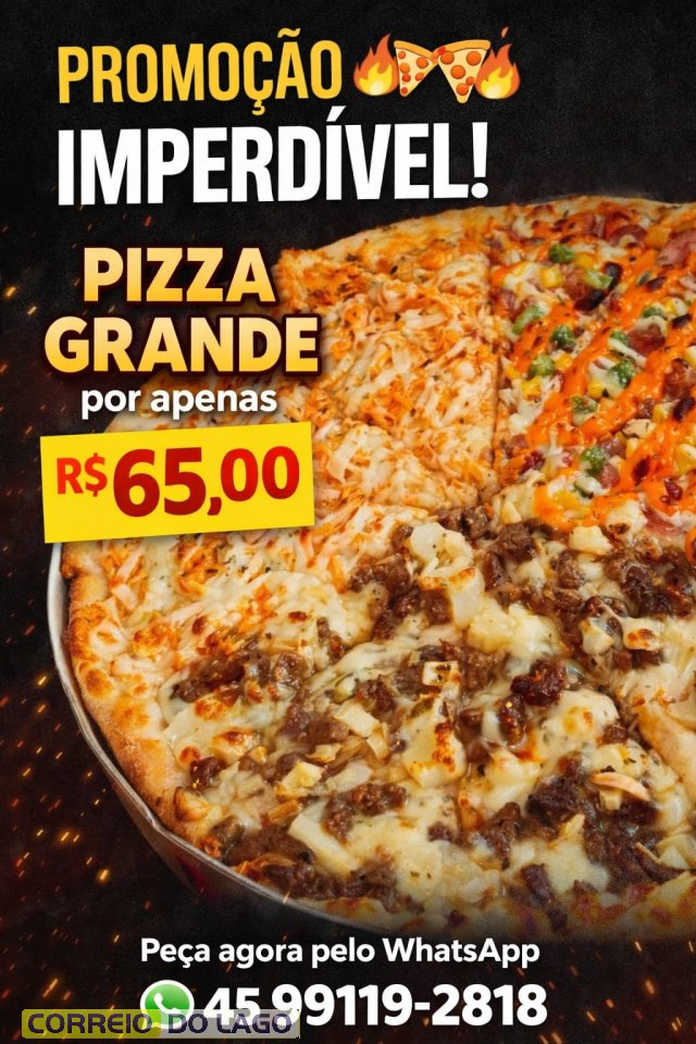 A Pizzaria Massa de Ouro, em Santa Helena, preparou uma promoção imperdível para este domingo (15): pizza grande por apenas R$ 65,00, com pedidos aceitos das 18h até as 22h30.