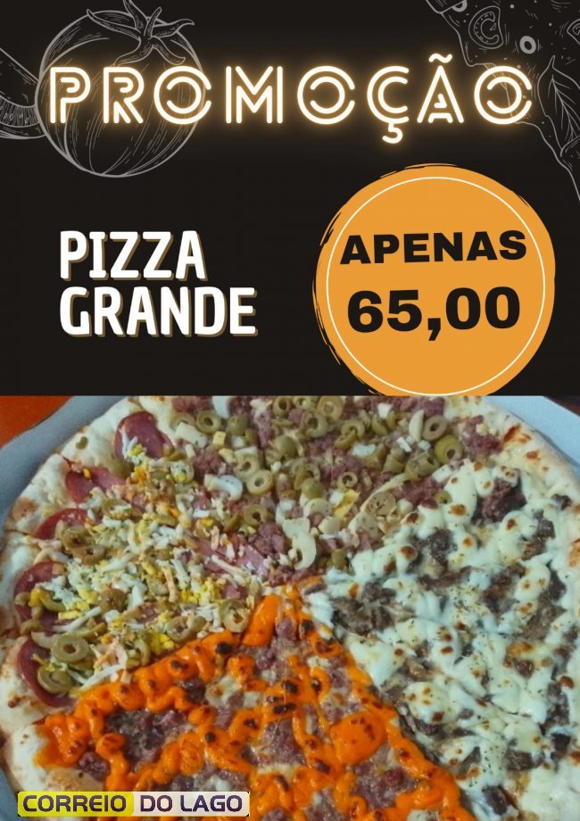 A Massa de Ouro preparou uma condição especial para o domingo, com pizza grande por R$ 65,00. Os pedidos podem ser feitos no período da noite, das 18h às 23h30, ideal para quem quer praticidade e sabor no jantar.