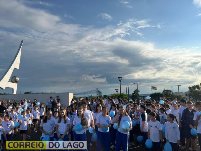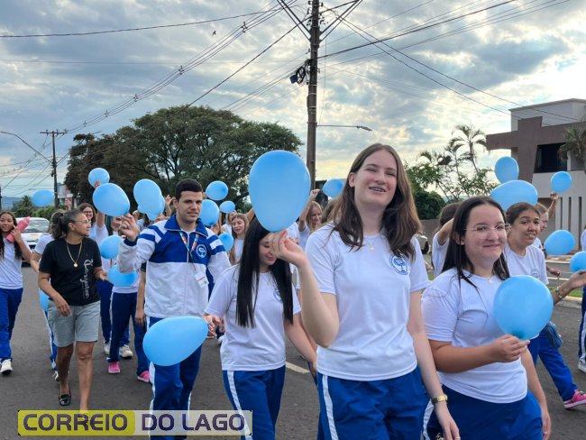 Educação que transforma: estudantes do Colégio Castelo Branco de Santa Helena estiveram juntos na caminhada por inclusão e conscientização sobre o autismo