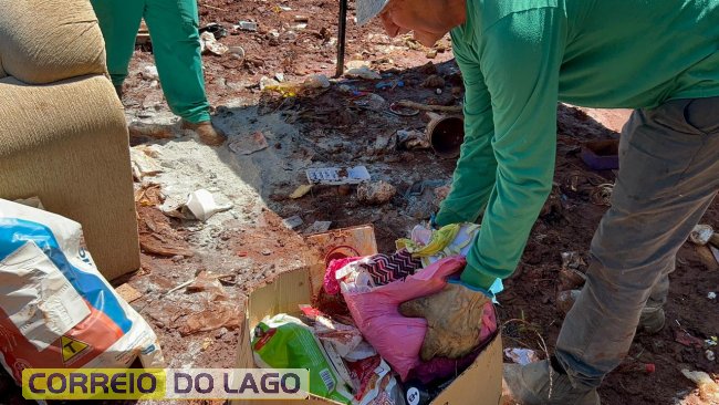 Durante o trabalho, as equipes recolheram grande quantidade de resíduos como potes, marmitas e tampas com acúmulo de água, materiais que, além de representarem descarte inadequado, se tornam potenciais criadouros do mosquito da dengue.
