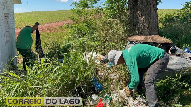 Equipes de Santa Helena realizam coleta de lixo descartado irregularmente em São Clemente