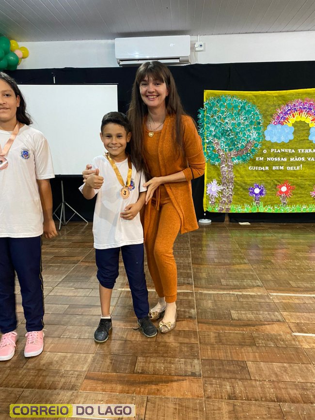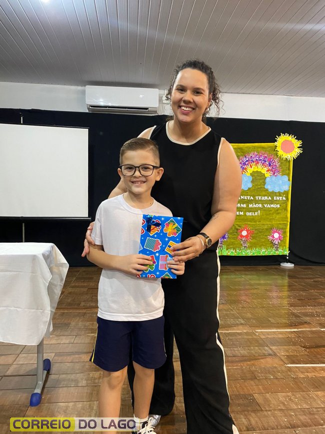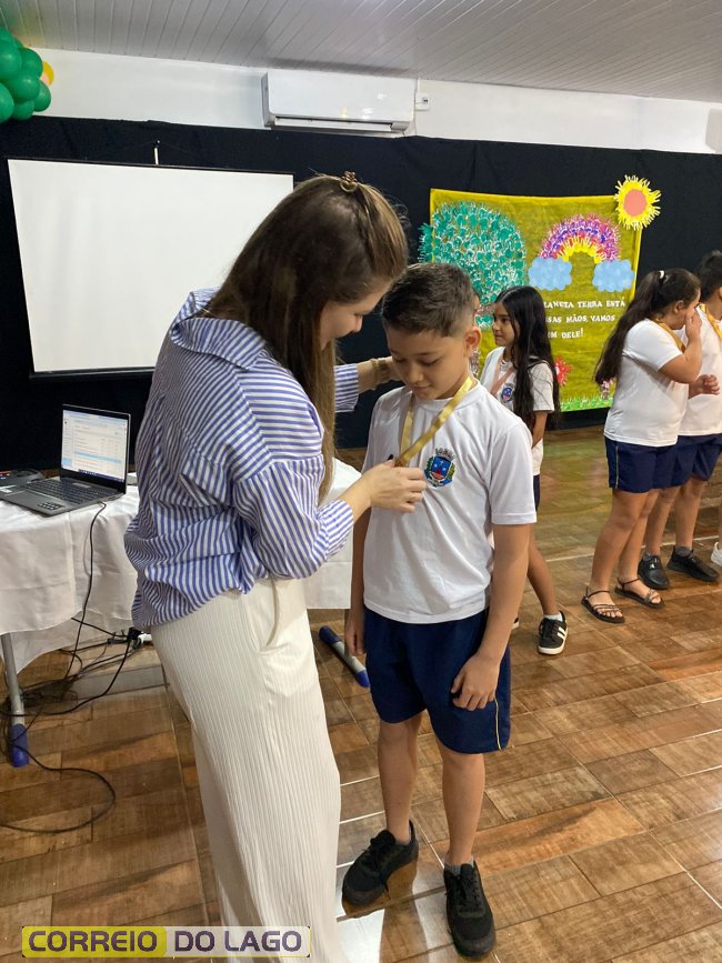 O evento também foi marcado por momentos de reconhecimento escolar. Os alunos do 2º ao 5º ano que participam do projeto “Bom da Tabuada” foram premiados com medalhas de ouro, prata, bronze e cobre, conforme o desempenho: