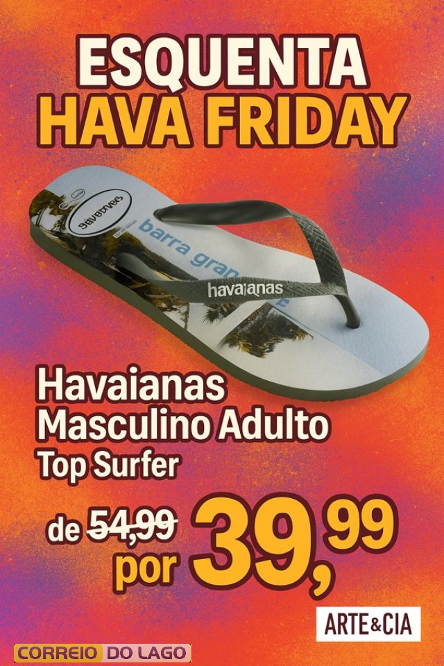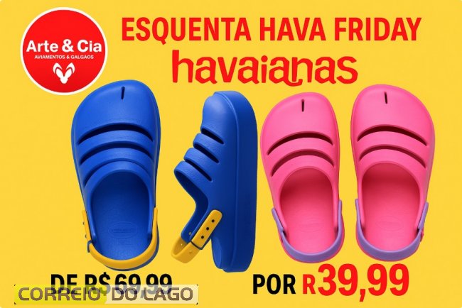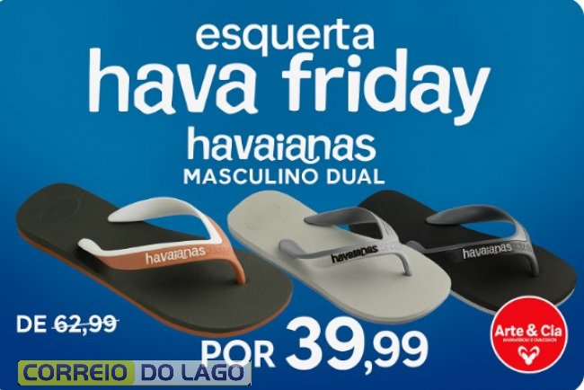 O esquenta continua na Arte&Cia em Santa Helena com promoções especiais. Entre os destaques estão o barbante, a partir de R$ 10,99, e diversos modelos de Havaianas masculinas e femininas, com preços a partir de R$ 39,99 no Esquenta Hava Friday.