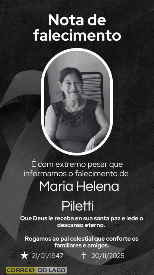 Maria Helena Piletti, 78 anos, faleceu ontem no Paraguai onde morava atualmente.