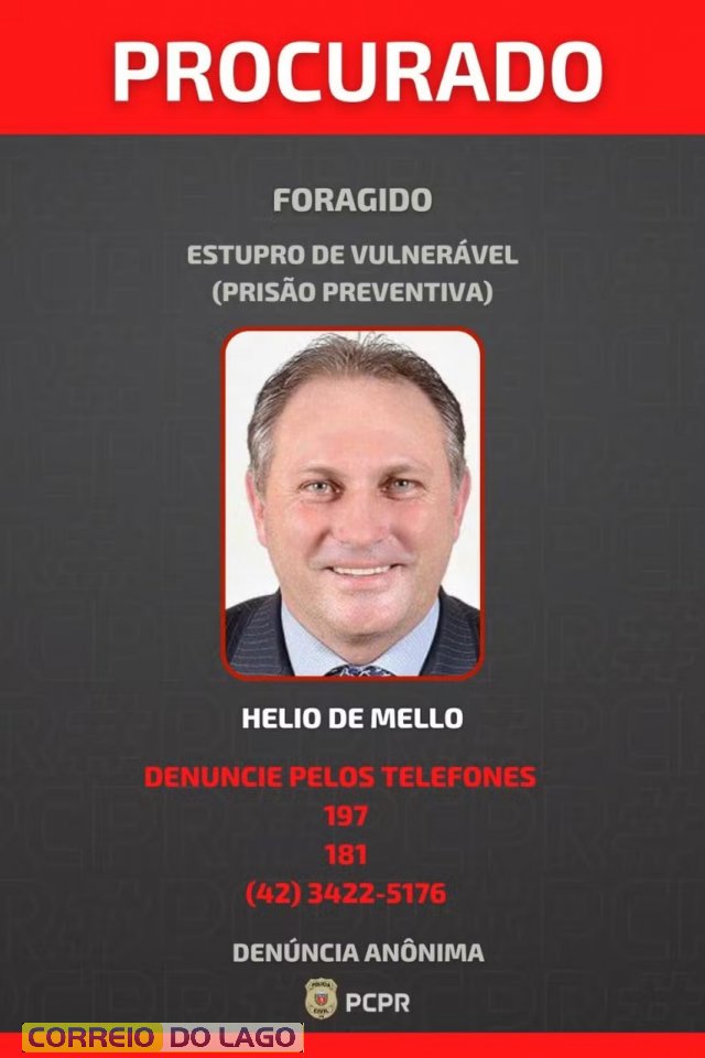 Conforme a Polícia Civil, Helio é procurado pelos crimes de: