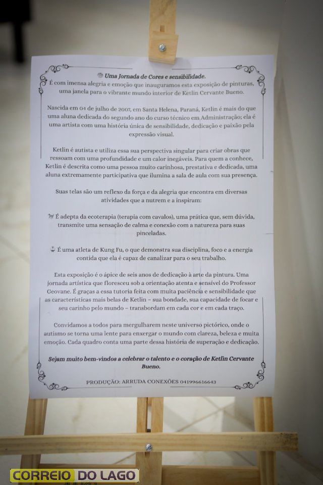 A mostra é uma realização da professora Cíntia Arruda, em parceria com a Câmara de Vereadores e com a equipe escolar, que ajudou a transformar o talento de Ketlin em uma experiência artística repleta de emoção e significado.