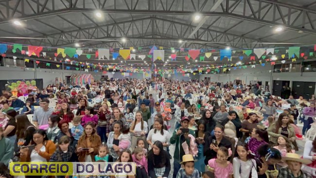 Na noite desta sexta-feira (13), dia de Santo Antônio, o município de Santa Helena viveu momentos de muita alegria e tradição durante a festa junina realizada pela Escola Tancredo Neves, localizada no bairro Vila Rica. O evento aconteceu no pavilhão Silom Schmidt, no Balneário Terra das Águas, e atraiu alunos, professores, familiares e moradores da comunidade.