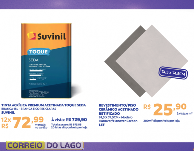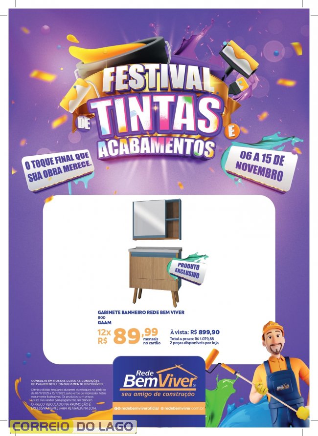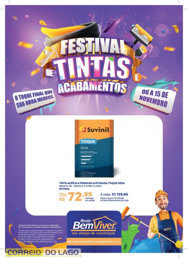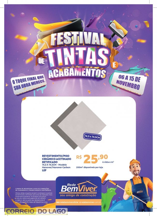 O festival oferece tudo o que é necessário para deixar o ambiente do jeito que você sempre quis, unindo qualidade, economia e beleza. São ofertas especiais em tintas, pisos, acabamentos e muito mais, tudo pensado para quem está construindo, reformando ou apenas quer renovar os espaços com um novo visual.