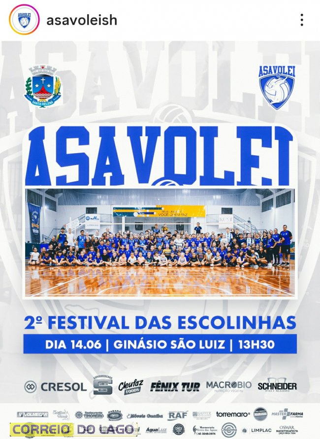 Neste sábado (14), o Ginásio de Esportes Luiz Eggers Filho, no Bairro São Luiz, em Santa Helena, será palco do 2º Festival das Escolinhas da Asavolei, com atividades das 13h30 às 16h30.