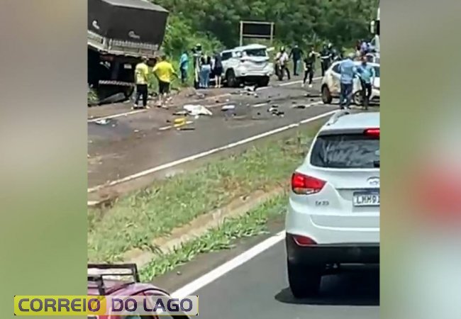 De acordo com informações preliminares da Polícia Rodoviária Federal (PRF), um caminhão que seguia no sentido crescente da rodovia teria perdido o controle da direção, invadido a pista contrária e colidido violentamente com três carros que trafegavam no sentido oposto.