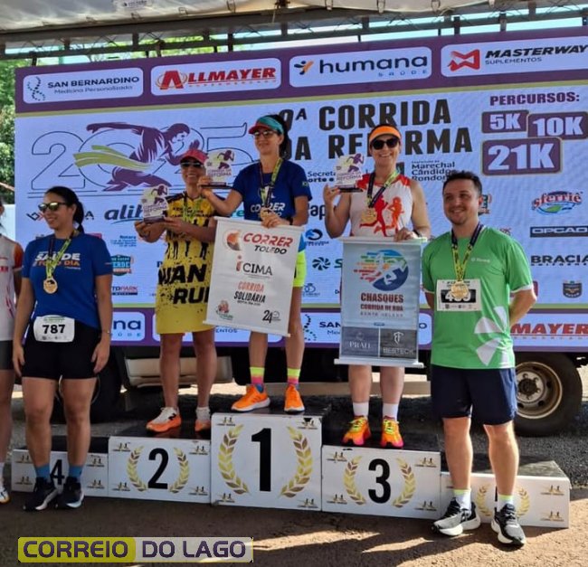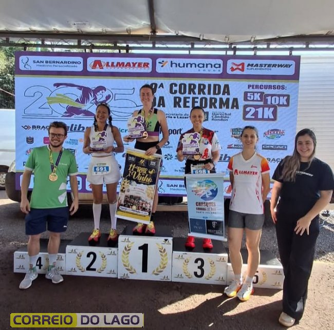 Entre os destaques, Lucineia Pereira dos Santos garantiu o 2º lugar nos 5 km na categoria 40 a 49 anos, Hugo Eduardo Nunes também ficou em 2º nos 5 km da faixa 30 a 39 anos, e Lucas Nervis alcançou o 2º lugar nos 21 km na categoria 18 a 24 anos.