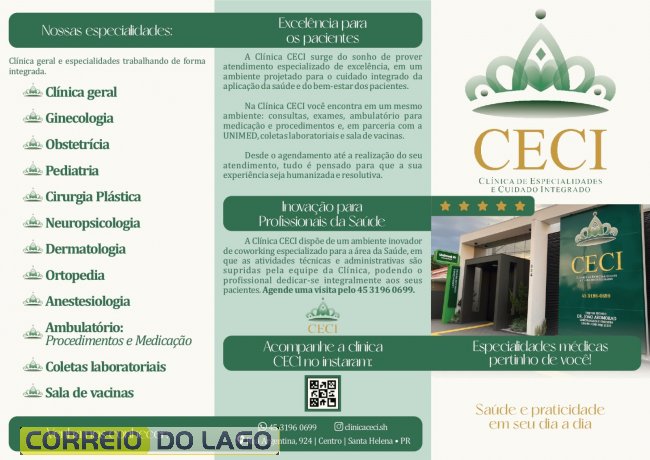 A Clínica CECI agradece a todos os pacientes, parceiros e profissionais que fazem parte dessa trajetória, destacando a confiança depositada ao longo deste primeiro ano de atividades. Segundo a instituição, o compromisso segue sendo avançar, inovar e cuidar, mantendo como essência o respeito, a competência e o cuidado diferenciado com a população de Santa Helena e região.