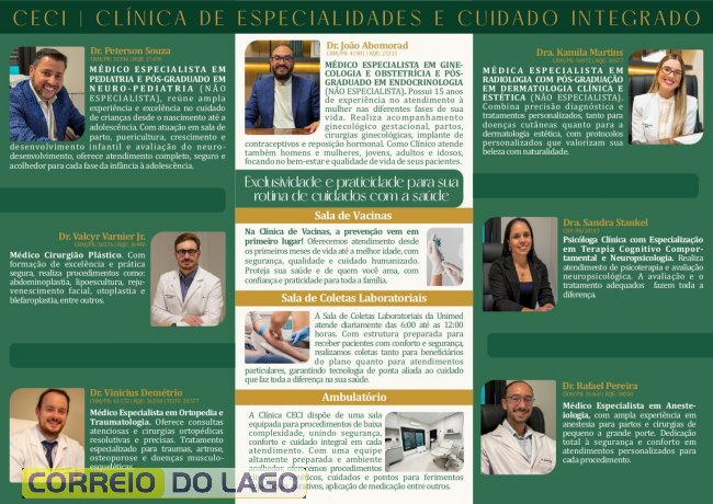 Para o Dr. João Abomorad e sua esposa, Dra. Vera Abomorad, idealizadores e proprietários da Clínica CECI, o ambiente e os serviços disponibilizados foram cuidadosamente pensados para oferecer atendimento de excelência em todas as etapas do cuidado: agendamento, recepção, acolhimento, realização de consultas, vacinas, exames e procedimentos, proporcionando uma experiência única, humanizada e eficiente.