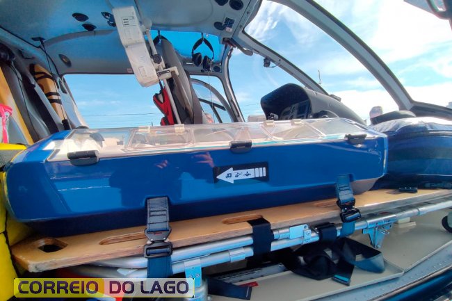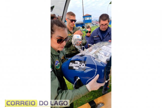 Bebê prematura foi levada do Hospital Municipal de Guaratuba para o Hospital Regional do Litoral, em Paranaguá. Foi a primeira vez que a incubadora neonatal do helicóptero é usada.