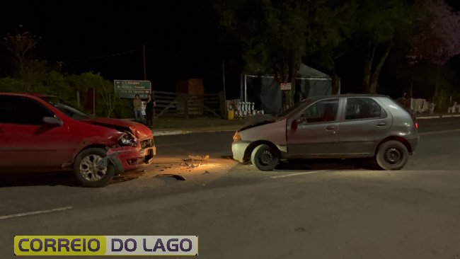 Os dois veículos tiveram danos na parte frontal. A Polícia Militar esteve no local para registrar a ocorrência.