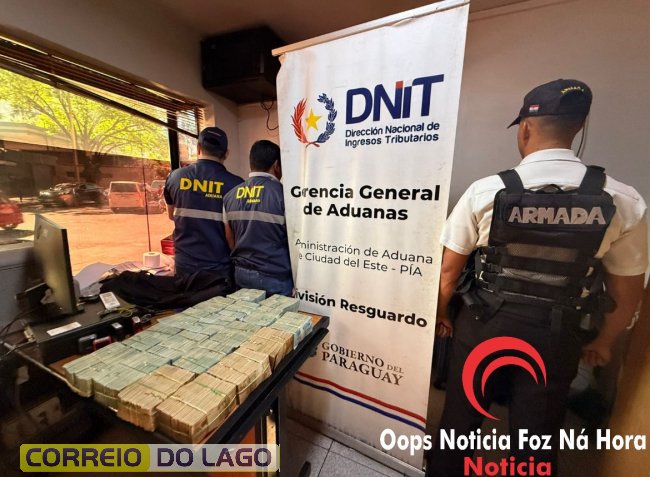 A Direção Nacional de Receita Tributária (DNIT) apreendeu aproximadamente R$ 1.600.000,00 (cerca de US$ 300.000) em espécie, escondidos em um veículo com placas paraguaias, conduzido por um cidadão brasileiro residente em Ciudad del Este.