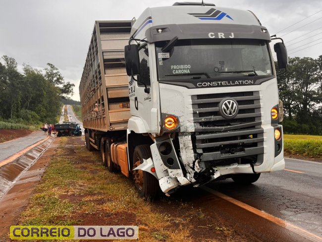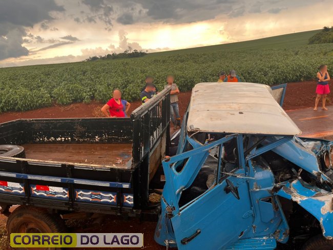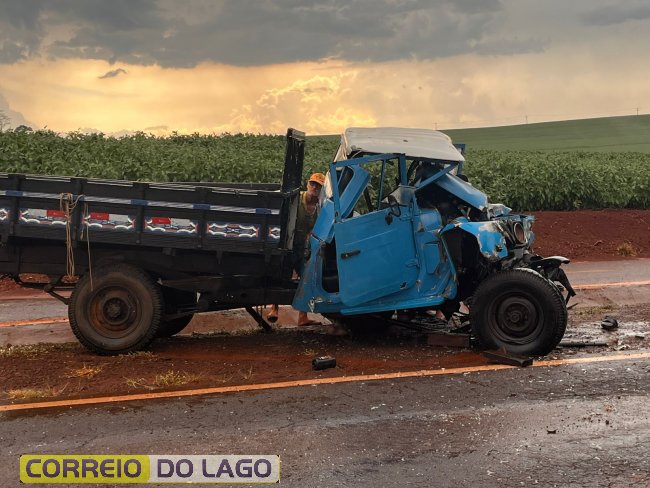 Um acidente gravíssimo foi registrado na tarde desta segunda-feira (01) na PR-495, no distrito de Moreninha, em Santa Helena, na região da Lagoa Seca. Uma colisão frontal envolvendo um caminhão de transporte de suínos e uma caminhonete Bandeirante, modelo antigo, deixou motorista ferido.