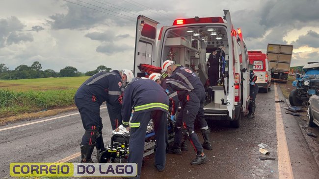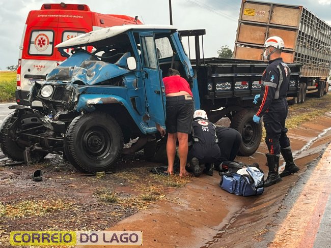 O motorista da caminhonete sofreu fratura exposta na perna direita e traumatismo craniano encefálico (TCE). Equipes de emergência foram acionadas rapidamente: duas ambulâncias, um caminhão do Corpo de Bombeiros e a Patrulha Rural da Polícia Militar estiveram no local para prestar atendimento. A colisão frontal ocorreu durante uma forte chuva, que possivelmente tenha feito o condutor da caminhonete perder o controle do veículo.
