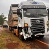 Homem fica gravemente ferido em acidente com caminhão carregado de suínos na PR-495 em Santa Helena