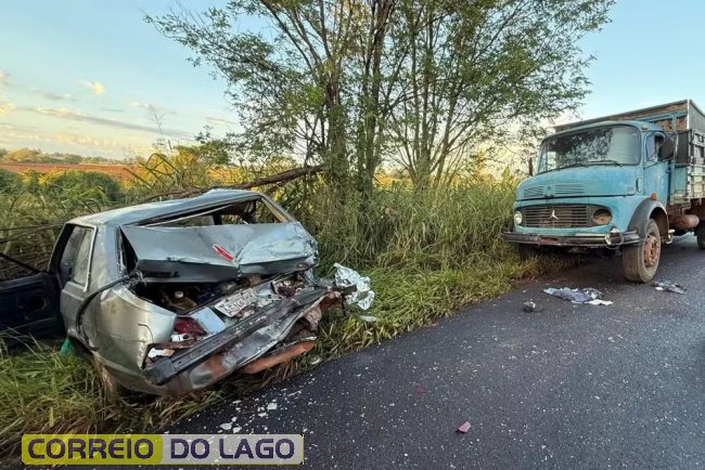 Acidente aconteceu na PR-317, em Nossa Senhora das Graças. Segundo o Samu, vitima que sobreviveu foi levada com ferimentos graves para a Santa Casa de Maringá. Motorista do caminhão não teve ferimentos.