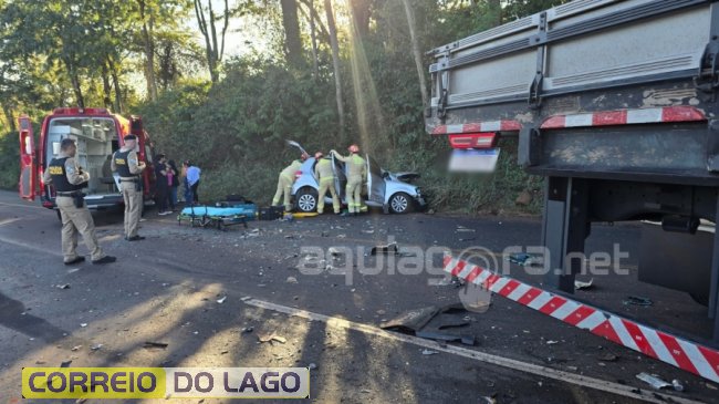 Um gravíssimo acidente de trânsito foi registrado na tarde desta quinta-feira (15), na rodovia PR 467 – no trecho entre a sede do BPFron e a Vila de Curvado no local conhecido como ‘Morro do Bele’, em Marechal Cândido Rondon. Uma pessoa morreu no acidente que envolveu um veículo Fox com placa de Três de Maio - Rio Grande do Sul e um caminhão Cargo 1662, com placa de Iporã.
