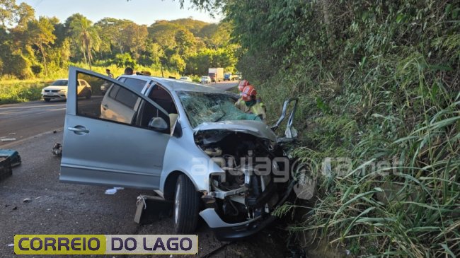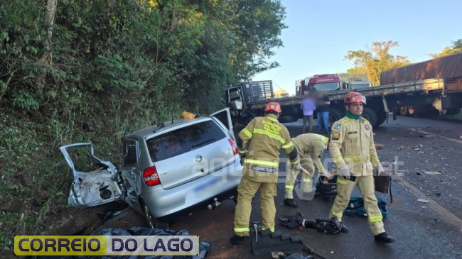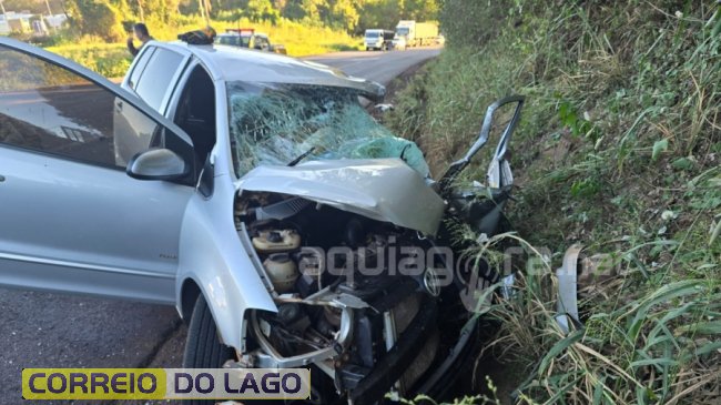 Com o impacto, o caminhão ficou atravessado na pista e o carro rodou parando no acostamento.