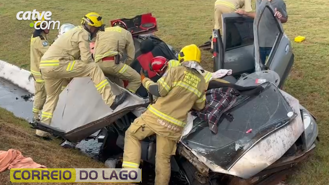Já a mulher ficou presa nas ferragens, exigindo uma operação cuidadosa do Corpo de Bombeiros, que utilizou ferramentas especiais para realizar o resgate com segurança. Ela apresentava suspeita de fratura na costela e contusão no tórax.