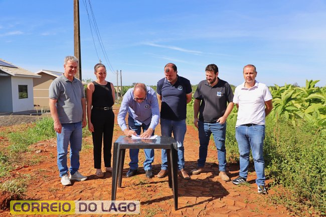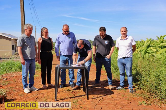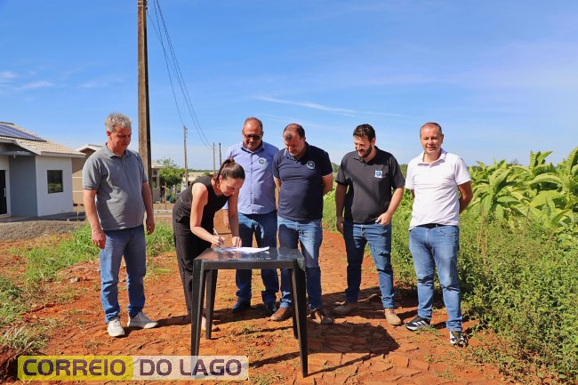 Durante a visita, foi assinada a ordem de serviço para a abertura da Rua Projetada A, Prolongamento da Rua 12 de Outubro e Rua Projetada B, marcando o início oficial das intervenções. O ato contou com a presença do Prefeito, Vice-Prefeito, equipe da Secretaria de Obras, além do engenheiro responsável e da sócia-proprietária da empresa TJ OBRAS, contratada para executar o projeto.